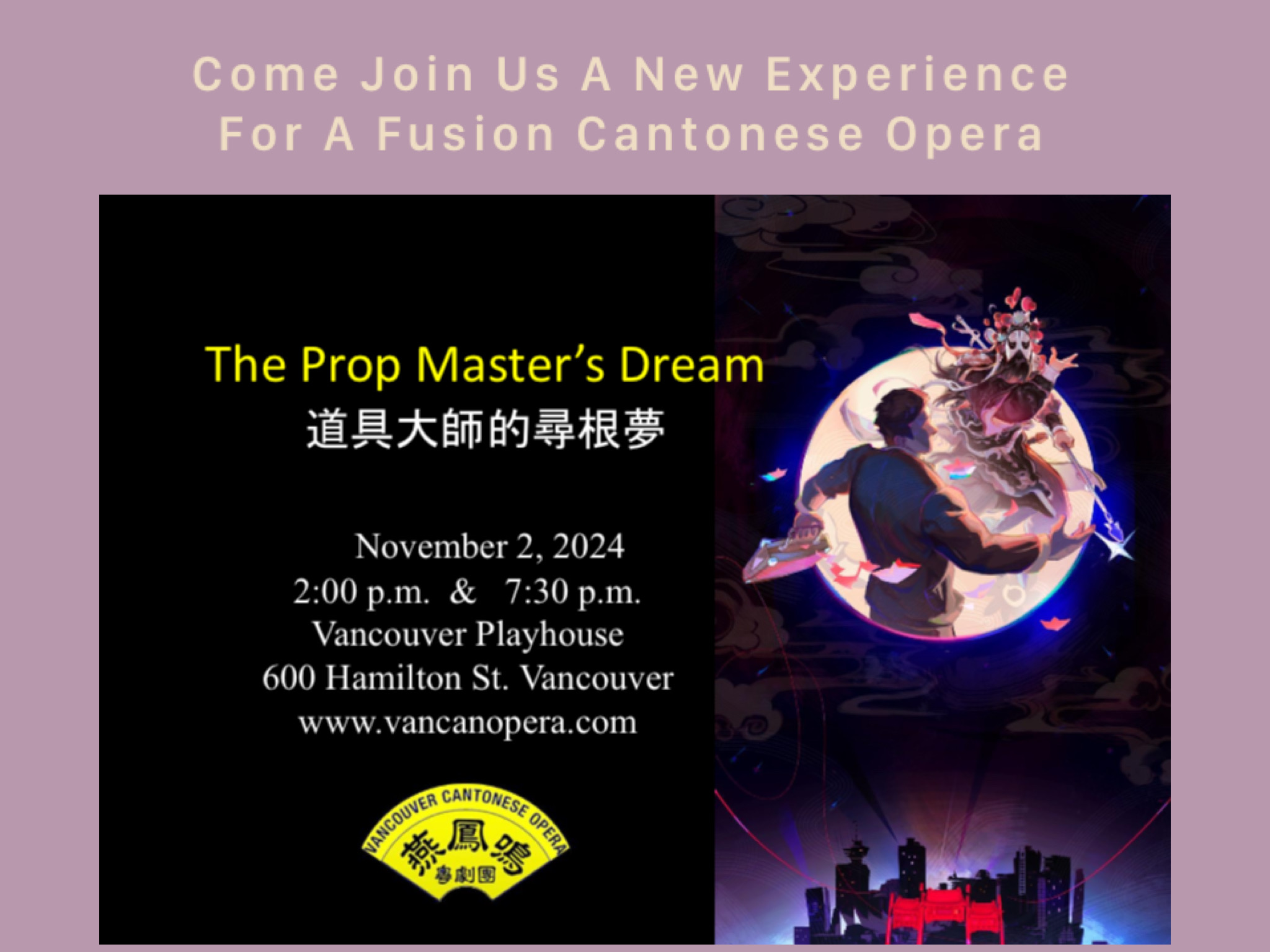 chinese language voltage-controlled oscillator digital data cantonese chinese key performance indicators (kpis) promotional strategies marketing promotional materials advertising campaigns marketing planningWe are a Canadian charitable organization, very passionate about performing and promoting Cantonese Opera in Canada. We โโwant to increase awareness and support, both volunteer and financial, for our organization, locally, nationally and globally. Currently our main audience consists of grass roots members who are chinese speaking elders. Our desire is to reach out to all audience members who enjoy the arts. Our two original fusion operas demonstrate that in addition to the traditional Cantonese Operas we present performances that highlight relevant cultural issues in Canada. To be more specific, we need and advertising campaign for the relaunch of our fusion opera called The Prop Master's Dream scheduled for Nov 2024.